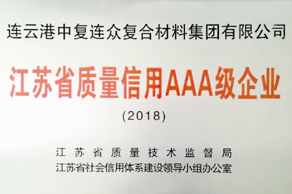 近日,經(jīng)過企業(yè)自愿申報、資料評審、現(xiàn)場核查、征求相關部門意見、公示等程序,中復連眾被江蘇省質量技術監(jiān)督局和江蘇省社會信用體系建設領導小組辦公室授予“江蘇省質量信用AAA級企業(yè)”榮譽稱號。本次全省共評選出55家省級質量信用AAA級企業(yè)。