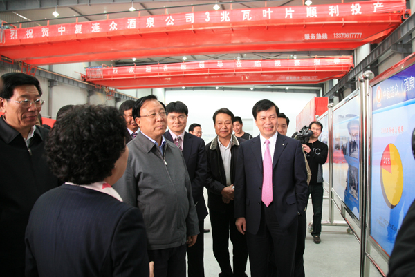 2010年5月12日,酒泉國(guó)家風(fēng)電裝備高新技術(shù)產(chǎn)業(yè)化基地正式掛牌,標(biāo)志著甘肅新能源基地建設(shè)進(jìn)入了一個(gè)新的階段。甘肅省委書(shū)記、省人大常委會(huì)主任陸浩出席掛牌儀式并為基地揭牌,省委副書(shū)記、省長(zhǎng)徐守盛也參加了儀式。隨后陸浩、徐守盛在中國(guó)復(fù)合材料集團(tuán)有限公司董事長(zhǎng)兼總經(jīng)理張定金的陪同下視察了中復(fù)連眾酒泉葉片基地。