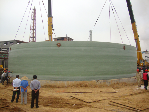 2010年3月,中復(fù)連眾成功競標(biāo)湖北宜昌2臺5000立方、1臺3000立方的玻璃鋼鹽酸貯罐項(xiàng)目。該項(xiàng)目存在罐體直徑大、罐頂易變形、罐身高、罐內(nèi)液體壓力大的難點(diǎn),并且內(nèi)部為高腐蝕性鹽酸介質(zhì),制作難度空前,在國內(nèi)甚至全球并無案例可參考。為確保該項(xiàng)目的成功實(shí)施,業(yè)主選擇處于行業(yè)領(lǐng)先地位的中復(fù)連眾來承擔(dān)此工程。中復(fù)連眾充分發(fā)揮卓越的自主創(chuàng)新能力,完成了多項(xiàng)技術(shù)攻關(guān),通過改進(jìn)纏繞設(shè)備、使用新型材料、內(nèi)部采用多點(diǎn)支撐、優(yōu)化施工工藝等方法,克服施工難點(diǎn),成功完成儲罐制作。從工程設(shè)計(jì)到工程竣工交付僅僅用了6個(gè)月時(shí)間,于2011年2月交付業(yè)主使用。