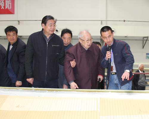 中復(fù)連眾副總經(jīng)理王彤兵首先對(duì)省級(jí)老干部考察團(tuán)的到來(lái)表示歡迎,并向考察團(tuán)介紹了中復(fù)連眾風(fēng)力發(fā)電機(jī)葉片的生產(chǎn)工藝。目前中復(fù)連眾生產(chǎn)的風(fēng)力發(fā)電機(jī)葉片主要基材為環(huán)氧樹(shù)脂,產(chǎn)品設(shè)計(jì)使用壽命為20年。去年年底中復(fù)連眾已成功躍居國(guó)內(nèi)最大的兆瓦級(jí)風(fēng)力發(fā)電機(jī)葉片生產(chǎn)企業(yè),2008年計(jì)劃生產(chǎn)750套風(fēng)力發(fā)電機(jī)葉片。