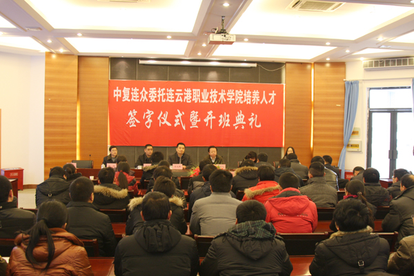 2月25日,中復(fù)連眾委托連云港職業(yè)技術(shù)學(xué)院培養(yǎng)人才簽字儀式暨開(kāi)班典禮隆重舉行。中復(fù)連眾總經(jīng)理喬光輝、連云港職業(yè)技術(shù)學(xué)院副院長(zhǎng)駱汝九、學(xué)院教師代表和全體學(xué)員出席儀式。